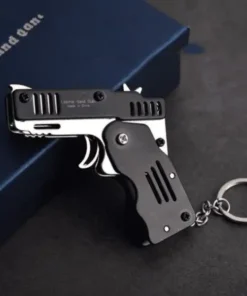 Całościowy metalowy mini składany gumowy brelok do kluczy z pistoletem-zabawką ma następujące cechy produktu: