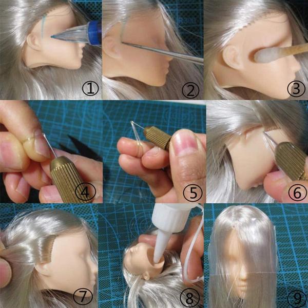 Zawartość pakietu: 1 zestaw narzędzia do ukorzeniania włosów dla lalek zawiera igły – 2 x 0,8 mm i 2 x 0,6 mm