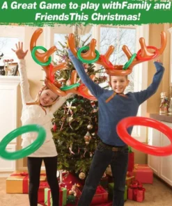 - Zestaw rodzinny: 3 nadmuchiwane czapki z rogami renifera i amp; 12 nadmuchiwanych kółek do rzucania