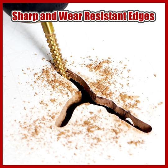 - Wykorzystano stal szybkotnącą HSS z powłoką tytanową, krawędzie korpusu wierteł są ostre, szybsze i przy mniejszym wysiłku.