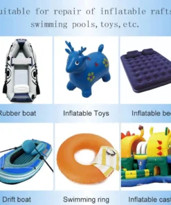 4. Odczekaj około 10 minut lub użyj suszarki do włosów i przedmuchaj plaster pokryty klejem oraz przyklejoną część wadliwego produktu, aż klej nie jest lepki i trochę suchy, przyklej bezpośrednio wycięty plaster w miejscu, które wymaga łatania, mocno wbij płaskim przedmiotem. Po naciśnięciu przez 12 godzin ciężkim przedmiotem napompuj ponownie i używaj.