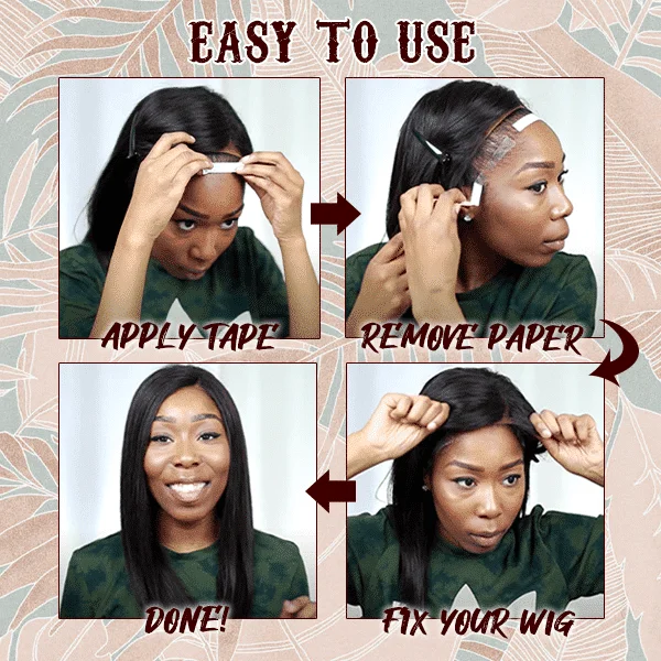 - Wystarczy przykleić taśmę wzdłuż linii włosów.